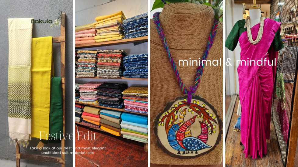 Bakula has a wonderful collection of materials, sarees, jewellery, designer handbags and many more stuff, that makes it actually like a one stop shopping for everyone. The best part of the shop is her wonderful collection of sarees (cotton, silk, ikat, jutesilk etc… My entire wardrobe is their s...